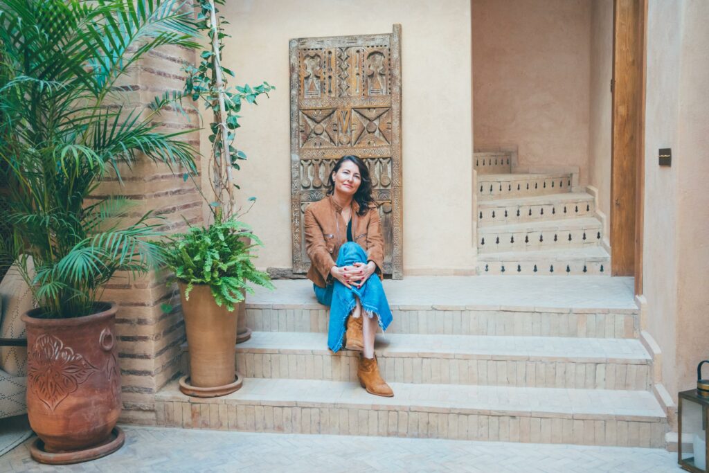 Les riads sont également des lieux parfaits pour un shooting photo à Marrakech. Les patios baignés de lumière, les zelliges, les escaliers et les terrasses offrent un cadre intime et élégant, idéal pour des portraits d’entrepreneurs ou de fondateurs de lieux.